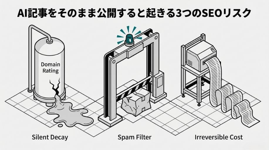 このセクションでは、AI記事をそのまま公開した場合に起きる3つの具体的なリスクを解説します。