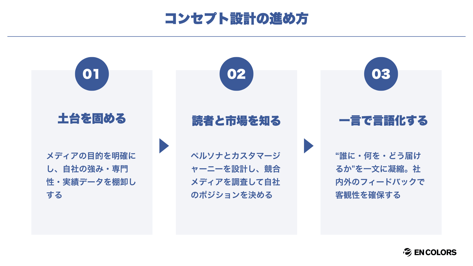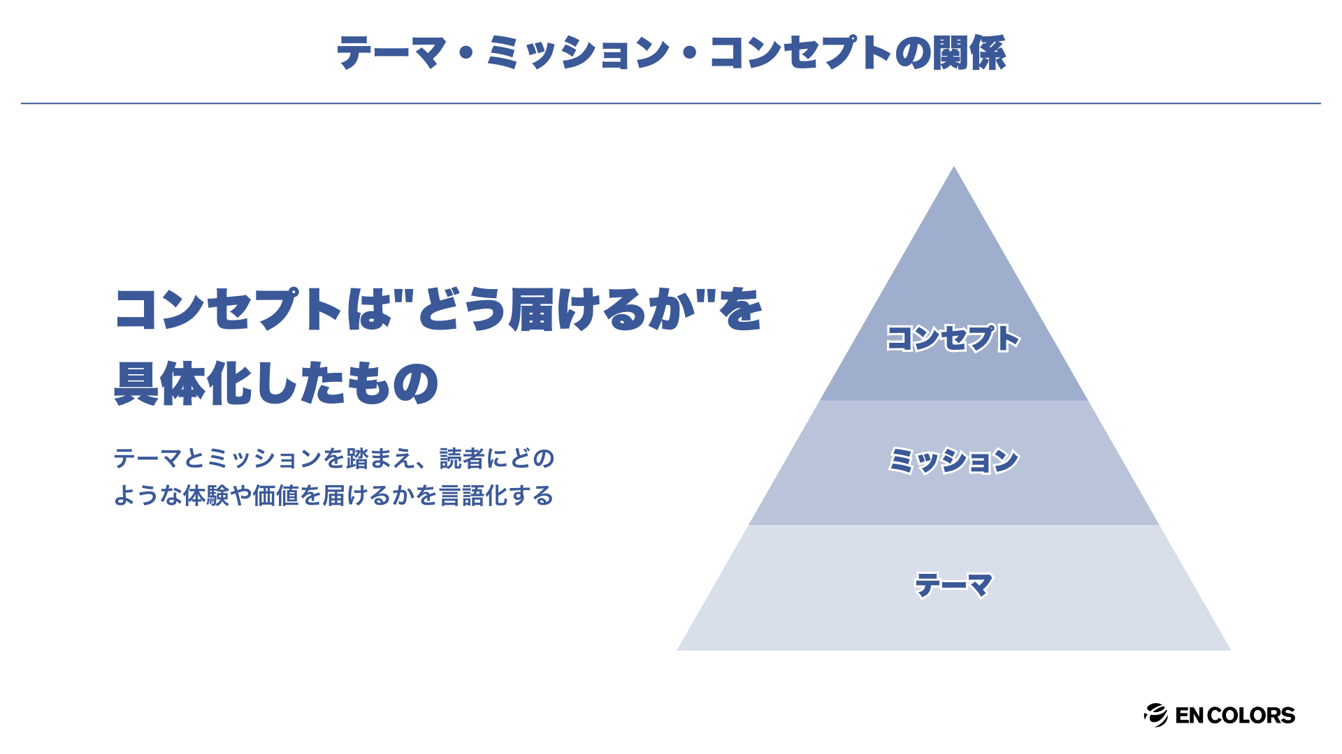 - コンセプトはメディア全体を貫く「価値提供の軸」である