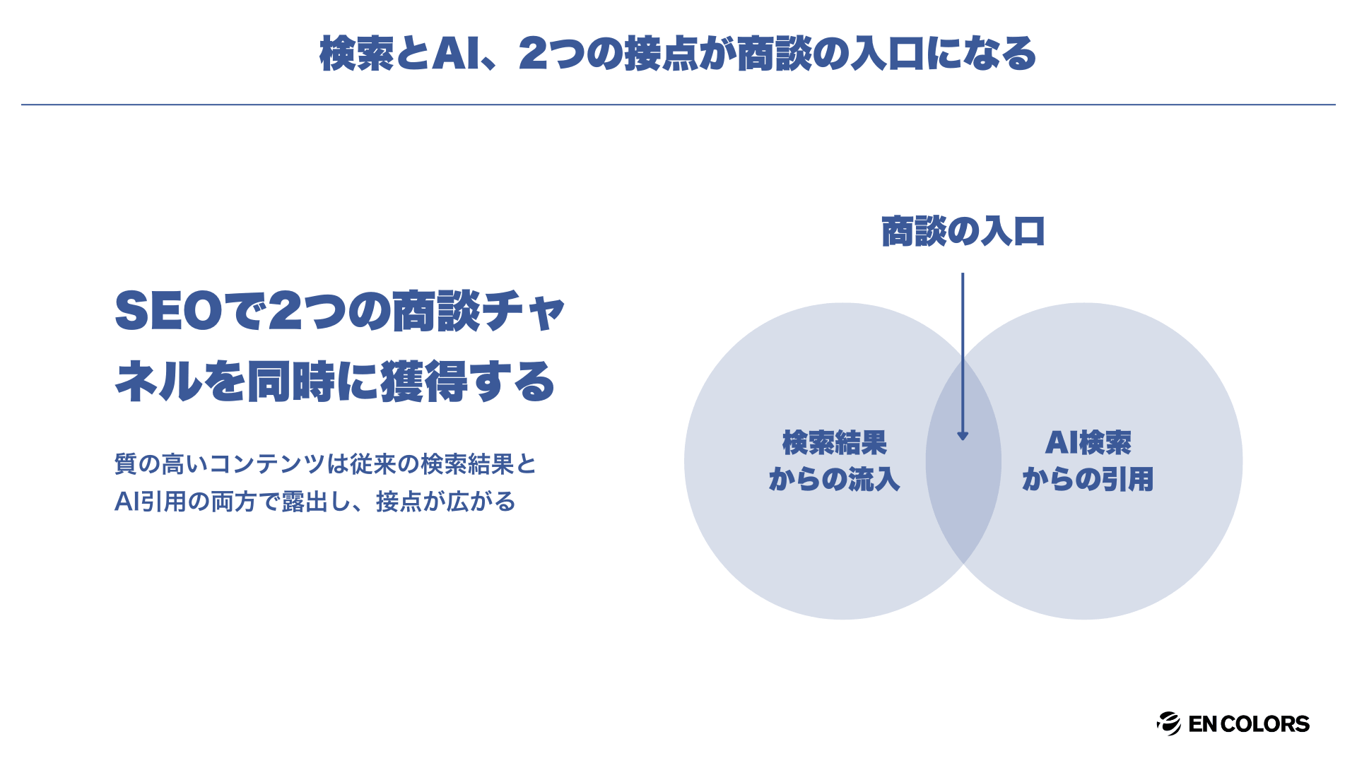 SEOで検索上位を獲得しておくことは、従来の検索流入だけでなく、AIからの推薦という新しい商談チャネルにもつながるのです。