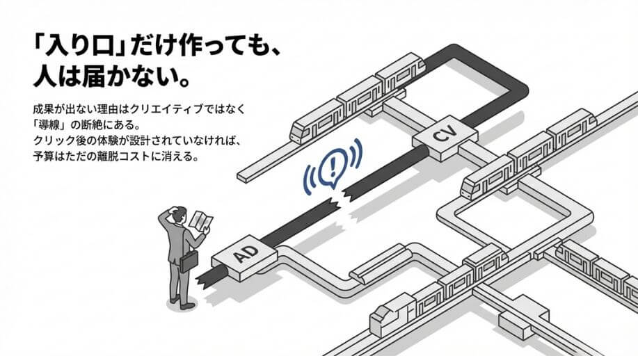 広告のクリック率やインプレッション数ばかりを見て、クリック後の体験を放置していないか。ここを見直すだけで、広告の費用対効果は大きく変わります。